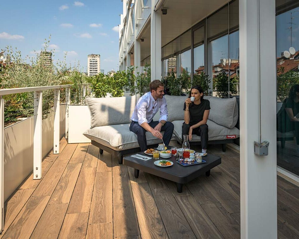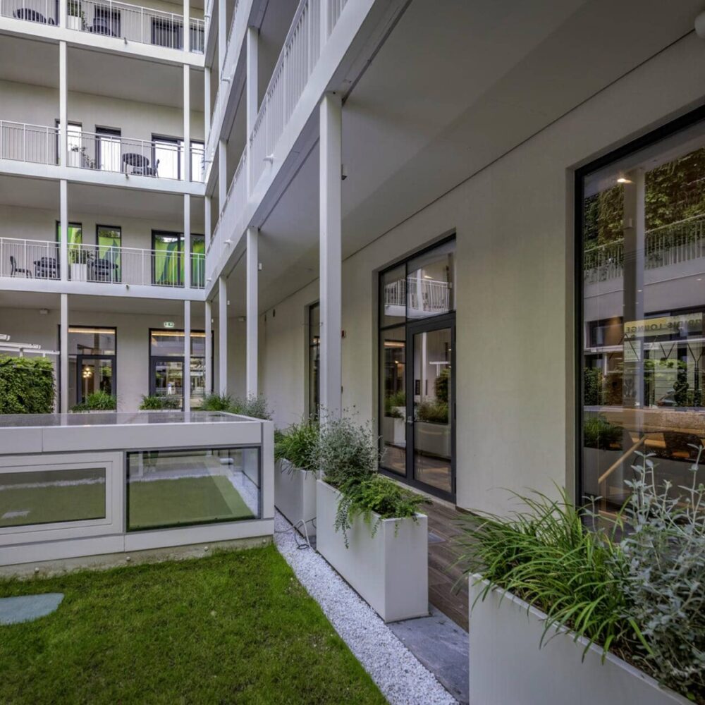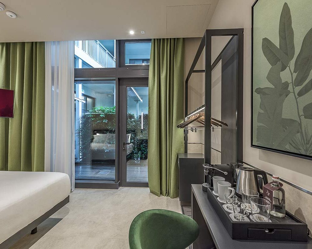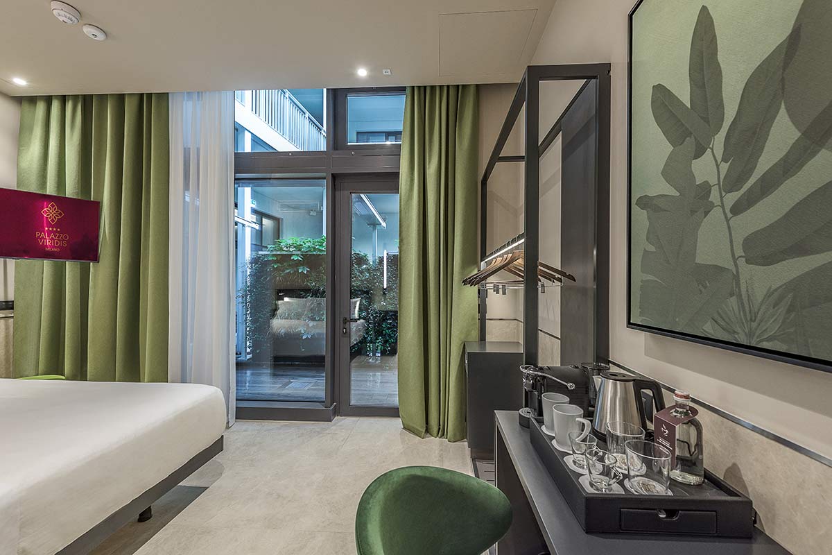 A pochi passi da Piazza Cinque Giornate, nel cuore di Milano è ubicato Palazzo Viridis, un nuovo concept di ospitalità che unisce architettura contemporanea, un’anima green e design. L’edificio, caratterizzato da ampie vetrate e da una struttura luminosa e ariosa, dialoga costantemente con la natura grazie alle pareti verticali verdi, ai balconi fioriti e alle terrazze panoramiche che abbracciano la città.